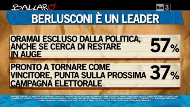 mentre il 57% sostiene che Berlusconi sia ormai totalmente fuori dalla scena politica nazionale:
