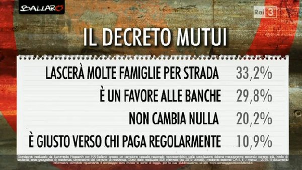 Nell’ultima puntata di Ballarò sono stati mostrati dei sondaggi politici sul tema del decreto mutui.