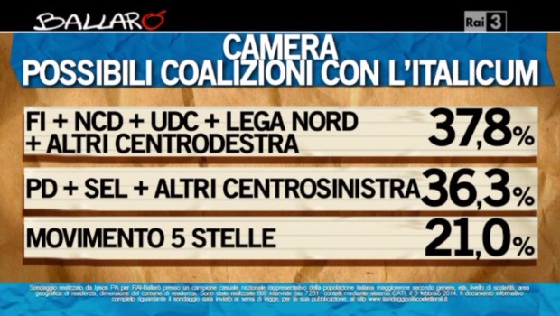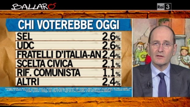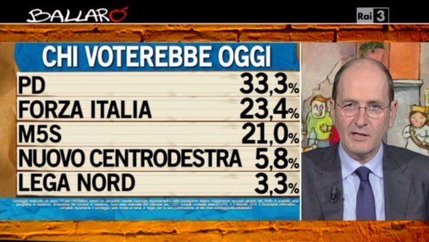 I sondaggi politici realizzati dall’istituto IPSOS di Nando Pagnoncelli per la trasmissione televisiva Ballarò mostrano alcuni cambiamenti nelle intenzioni di voto degli elettori.