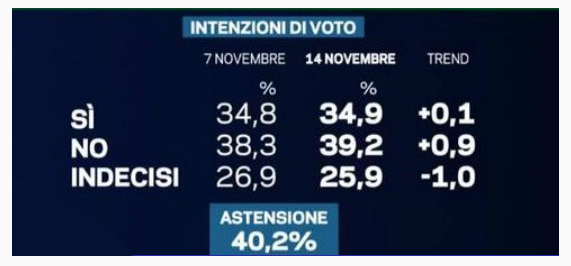 Infatti, se si votasse oggi la maggioranza degli italiani sceglierebbe il No.