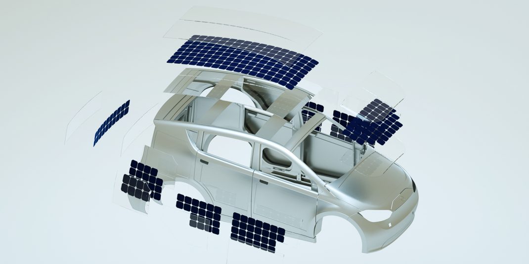 Sulla scocca, precisamente sugli sportelli, sul tetto e sul cofano anteriore e posteriore, sono montati dei pannelli solari integrati in un polimero altamente durevole e resistente agli urti: 248 celle fotovoltaiche perfettamente incorporate nella carrozzeria, con un’efficienza del 21% e in grado di generare 1272 Watt di picco, che possono sostenere l’autonomia con un massimo di 34 km aggiuntivi (registrati a Monaco di Baviera).