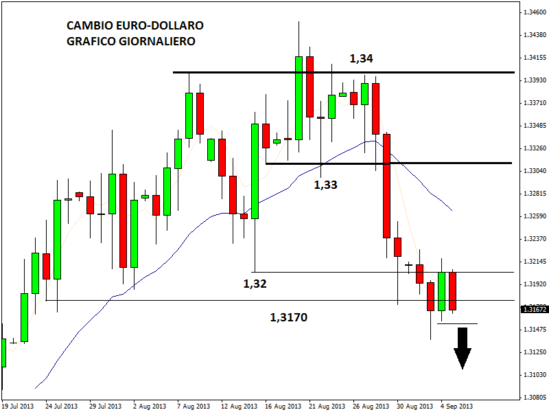 Sul forex il tasso di cambio euro-dollaro continua a mostrare movimenti non semplici da decifrare, in attesa della riunione odierna della BCE e della conferenza stampa di Mario Draghi. I tassi nell’area euro dovrebbero restare fermi sul minimo storico dello 0,5%. Da un punto di vista tecnico il cross euro-dollaro quota poco sotto 1,3170 e sembra proiettato verso il test dei minimi di due giorni fa posti a 1,3138.