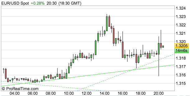 Il cambio Euro Dollaro è letteralmente esploso in concomitanza con l’uscita di questo dato muovendosi all’impazzata in un ampio range tra 1,3168 e 1,3223.