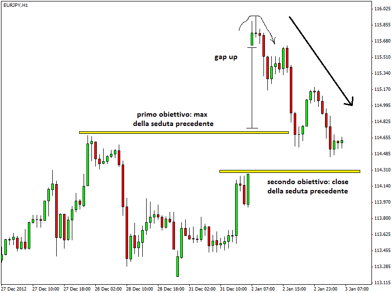 La distanza tra chiusura e apertura del giorno dopo viene chaiamata "lap". Oggi vediamo un caso di studio relativo al cambio euro/yen, caratterizzato da una forte apertura in gap up nella prima seduta del 2013. L’eccesso di ipercomprato crea i presupposti per una discesa dei prezzi.