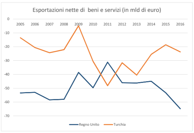 - il Regno Unito appartiene all’Unione europea (ancora per poco visto il referendum ma questo non incide sui ragionamenti effettuati); la Turchia no, però rappresenta un importante partner commerciale dell’Ue;