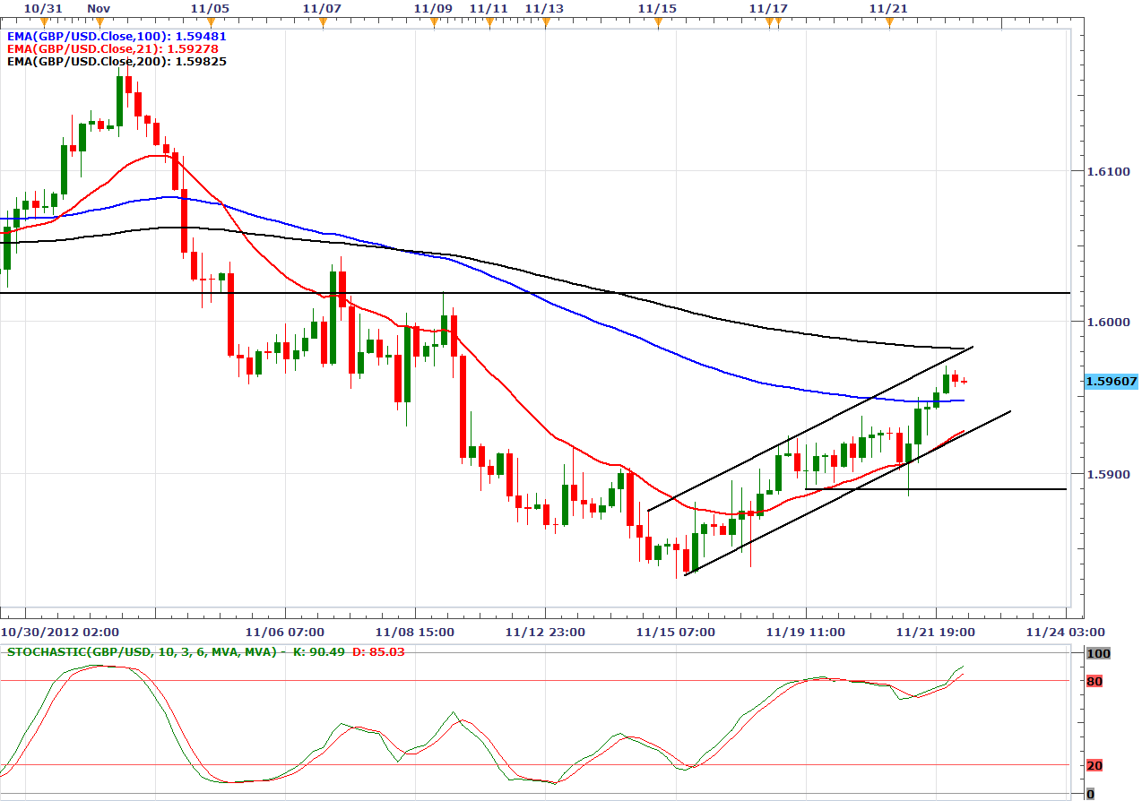 Mi sono accorto di aver sbagliato ad indicare il time frame di riferimento sulla sterlina per ieri, chiedo venia. Osservavo una bandiera su un grafico a 4 ore, non orario, dove abbiamo assistito alla rottura a ribasso della parte bassa del canale con il raggiungimento dei livelli di supporto statico segnalati. La loro tenuta è stata propedeutica ad una ripresa di forza della sterlina, che dopo aver rotto 1.5925 è riuscita effettivamente a compiere nuovi massimi. Ci troviamo ora in prossimità della media a 200 periodi e sulla parte alta del canale, che sta continuando a contenere i prezzi. Buona dal punto di vista del risk reward la possibilità di vendere sterline sulle resistenze di breve, con reverse in caso di superamento di 1.5985, con potenziali target sui livelli di massimo precedenti, poco sopra 1.6000. Un ritorno sotto 1.5930 diviene necessario per puntare nuovamente verso 1.5890.
