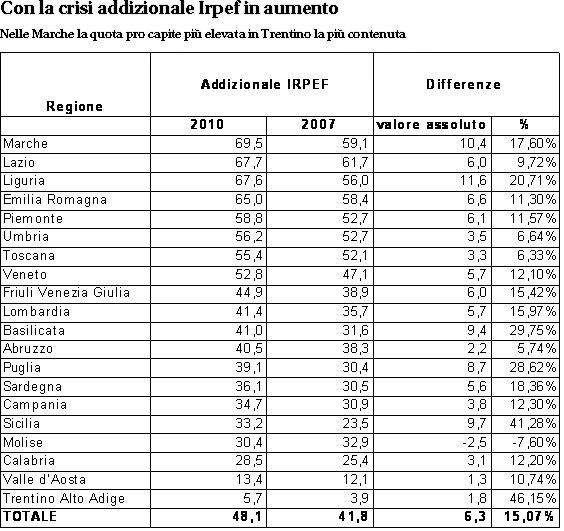Con la crisi è aumentata l’addizionale IRPEF destinata ai Comuni.