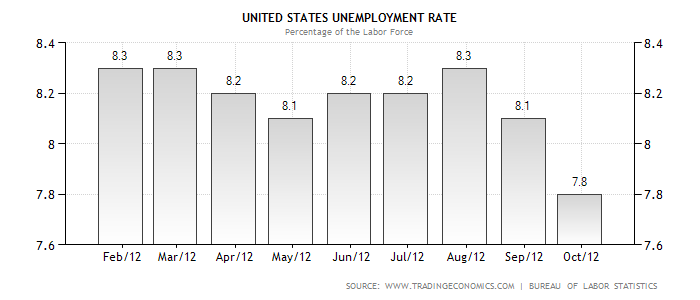 - Nel settembre del 2012 il tasso di disoccupazione è positivamente sceso al 7.8%.