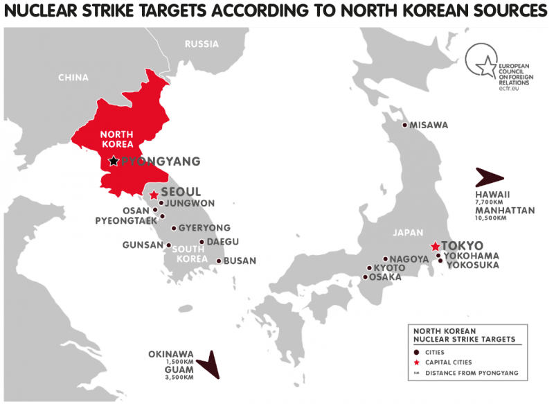 Per Godement, gli obiettivi militari della Corea del Nord sarebbero le basi militari della zona del Pacifico, mentre quelli civili sarebbero rappresentati soprattutto da città giapponesi, sudcoreane e americane.