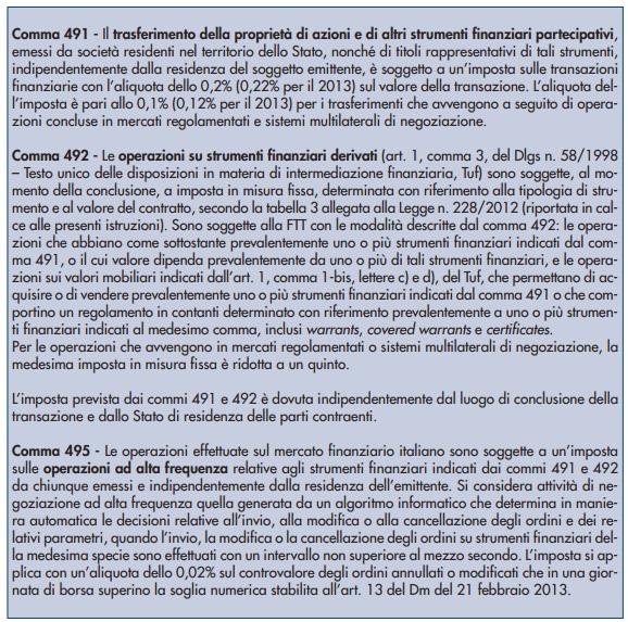La Tobin Tax, introdotta dall’art. 1, comma da 491 a 500, legge n. 228/2012, si applica:
