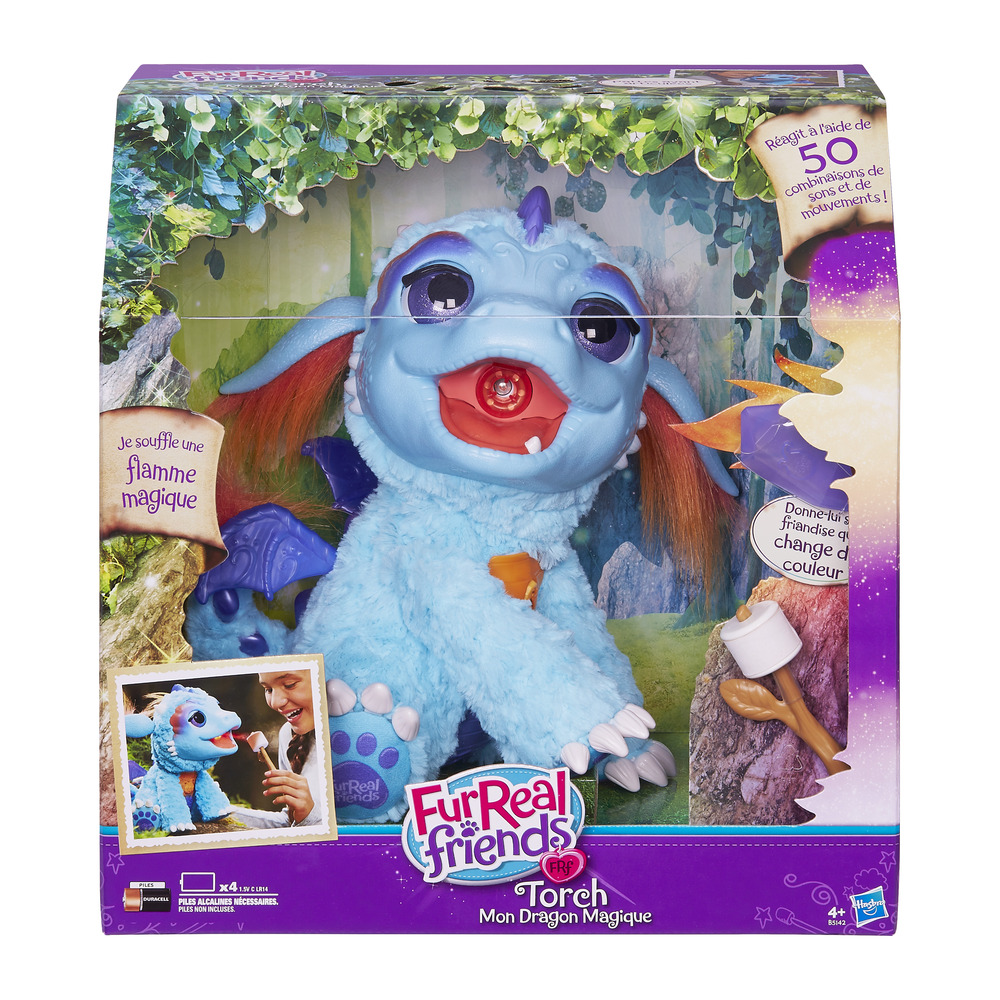 Torch è un draghetto divertente e pieno di sorprese che vive in profondità della foresta incantata. Come tutti i draghi Torch è in grado di sputare fiamme e questo immaginiamo sarà uno dei motivi per cui bambini e bambine chiederanno ai propri genitori di comprarlo.