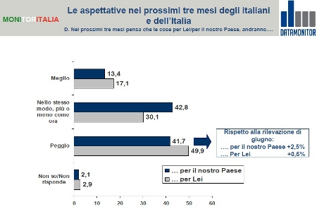 I dati relativi al mese di luglio, infatti, mostrano un’Italia piuttosto preoccupata e disarmata di fronte all’attualità e alle possibilità future.