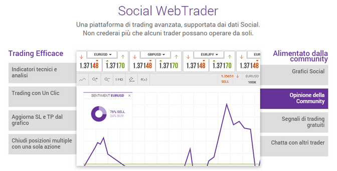 - La piattaforma MT4 non è integrata con le funzionalità della Social Web Trader;