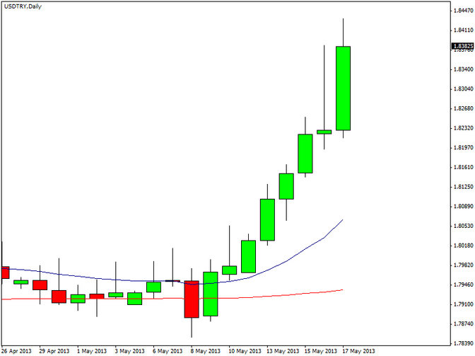 Da inizio anno il listino DJ Titans20 guadagna il 17% circa. Sul forex il tasso di cambio euro/lira turca è salito ieri in area 2,3730 ai massimi da quasi tre mesi. Il cross Usd/Try, invece, sta sperimentando un rally davvero molto robusto. Il cross è salito fino in area 1,8430, sui livelli più alti da giugno 2012. Il cambio sembra proiettato verso quota 1,88 - 1,90.