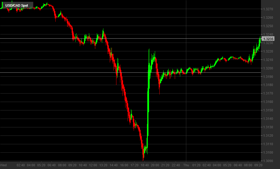 Al contempo ieri abbiamo avuto un impennata dei prezzi del greggio davvero spaventosa, infatti il petrolio è salito del 6% apparentemente senza particolari motivi. Il dollaro canadese, che è fortemente legato al prezzo del greggio, si è rafforzato altrettanto, riuscendo a essere più forte del dollaro.