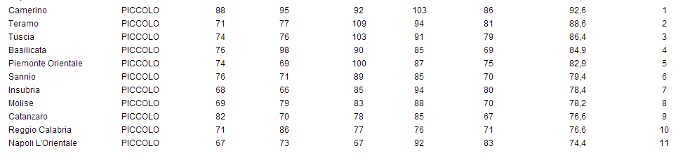 Tra le piccole si conferma il primato di Camerino, seguita da Teramo e da Tuscia, mentre all’ultimo posto troviamo ancora la Campania con l’Ateneo Napoli L’Orientale.