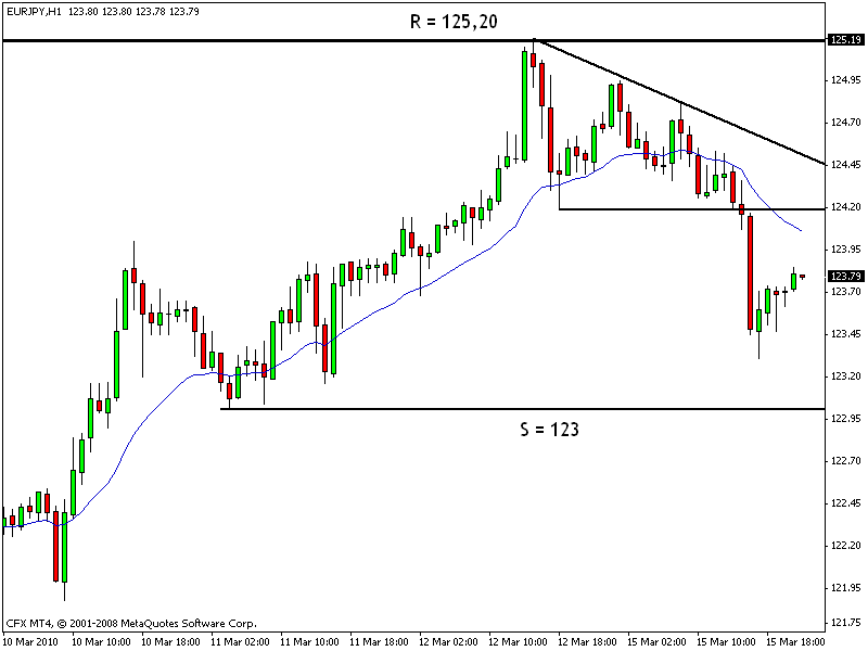 L’Eur/Jpy, invece, ha formato un triangolo discendente sui massimi e il successivo breakdown di 124,20 ha facilitato la discesa fino a 123,31, anche qui non molto lontano dall’importante supporto (tra l’altro soglia psicologica) di 123.