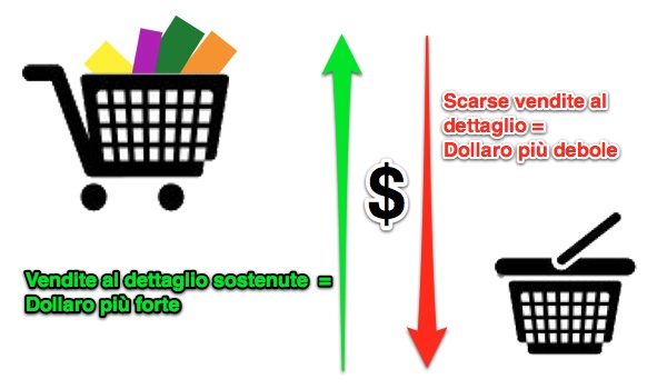 Il dato sulle vendite al dettaglio è uno straordinario strumento per valutare l’andamento delle spese dei consumatori che rappresentano circa il 70% dell’intera crescita economica negli Stati Uniti. È per questa ragione che i trader sono molto attenti alla pubblicazione di questo dato che tende ad avere grande impatto sull’andamento del mercato valutario.