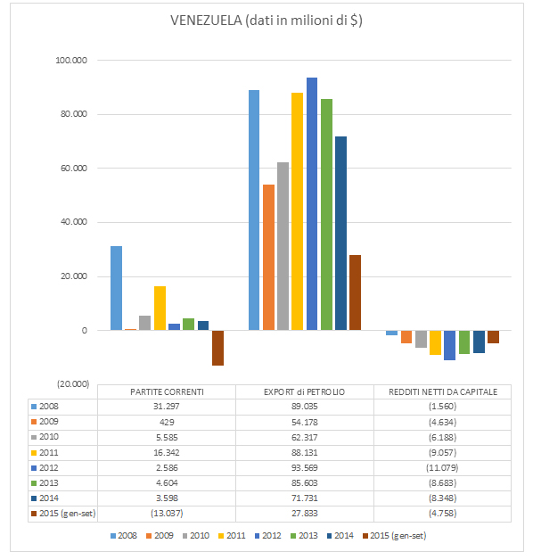 Dal 2009 fino a settembre 2015, al netto dei “redditi da capitale” percepiti dall’estero (pensiamo ad esempio al dividendo di un’azione italiana detenuta in portafoglio da una banca venezuelana), sono “usciti” dal Venezuela “redditi da capitale” per più di 54 miliardi di dollari.