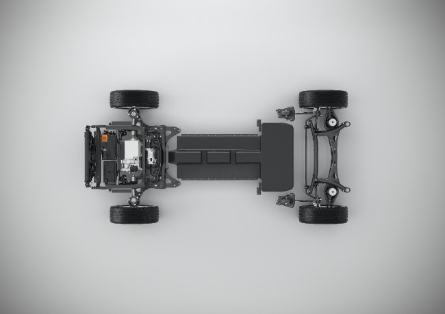 Tuttavia, Volvo ha illustrato che la prima vettura a emissioni zero sfrutterà la piattaforma CMA - Compact Modular Architecture, al momento l’avanguardia della mobilità green. Come potete vedere dalla foto, la piattaforma presenta il motore posto anteriormente.