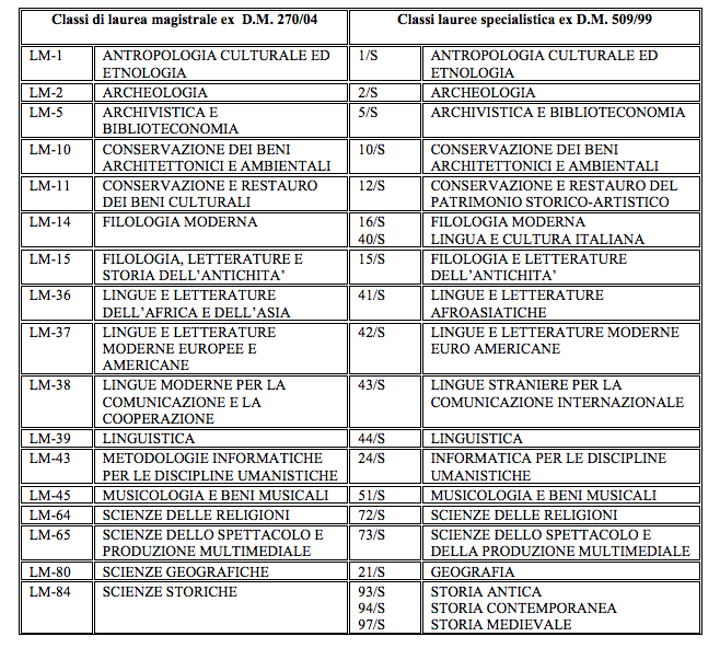 – Storia; - avere conseguito una laurea specialistica/magistrale dal 1 giugno 2013 in uno dei seguenti Corsi: