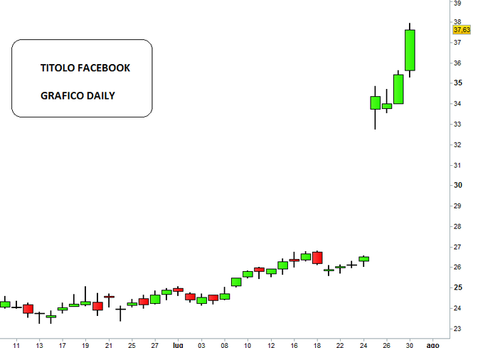 Goldman Sachs ha deciso di aumentare il target price a 46 dollari, dalla precedente valutazione di 40 dollari. Jp Morgan ha invece incrementato il prezzo obiettivo a 44 dollari. In generale, almeno dieci broker e banche d’affari hanno rivisto al rialzo le stime sulle azioni Facebook. Ora c’è grande fiducia per la crescita del business nei prossimi anni e lo stesso Zuckerberg ha sottolineato che sono state poste “buone fondamenta per il futuro”. Da un punto di vista tecnico, una chiusura settimanale superiore a 38 dollari dovrebe dare il via a un robusto bullsih trend da qui a fine anno con target probabilmente anche superiore a 50 dollari.