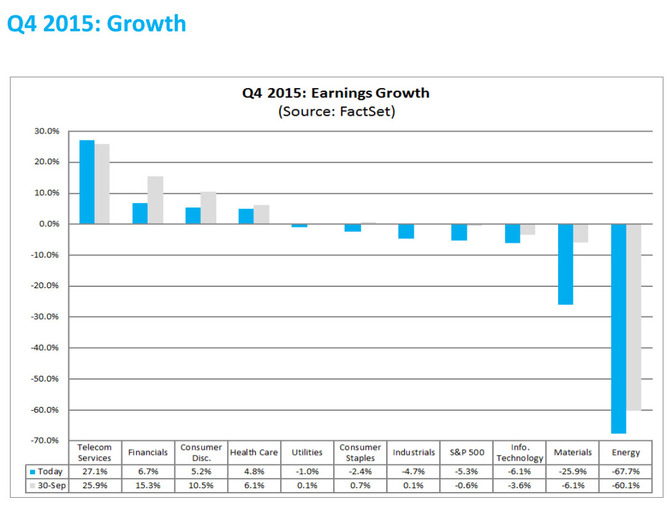 Come si può vedere dalla tabella sottostante, elaborata da FactSet, le aspettative per questo trimestre non sono delle più rosee. Solo 4 settori sono visti in crescita mentre gli altri sono attesi in deciso declino: