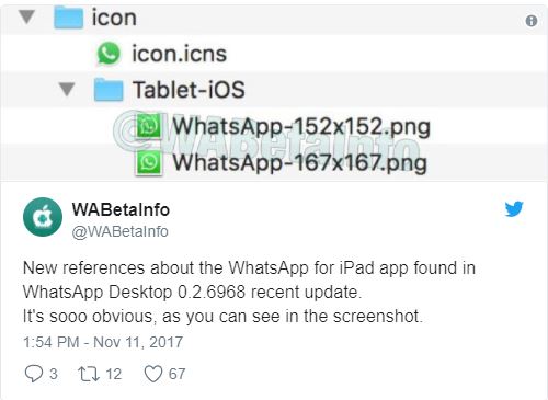 Facebook, società proprietaria di WhatsApp, in quel periodo ha aggiornato il servizio nella versione desktop, e sembrerebbe aver aggiunto icone per iPad (si legge la dicitura “Tablet iOS”).