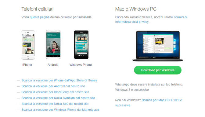 Infine, vi ricordiamo che se non volete (o potete) installare il programma sul computer c’è sempre Whatsapp Web, per cui non è necessaria nessuna installazione.