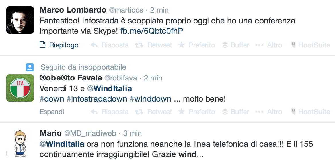 Collassato anche il servizio clienti (155 e 159) e preso d’assalto l’account twitter di infostrada da centinaia di messaggi di protesta, eccone alcuni: