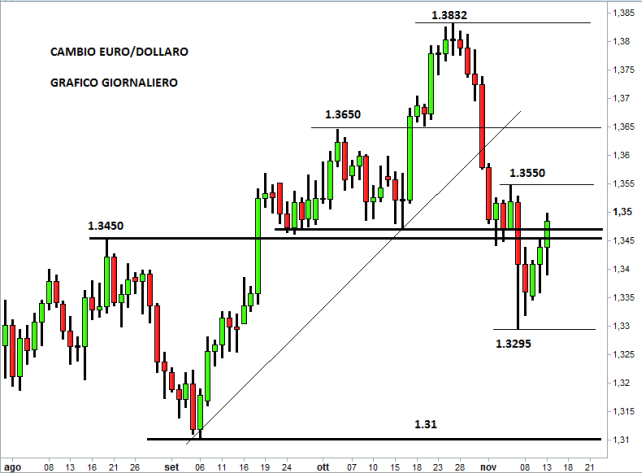 Non sono bastate le parole di Peter Praet, membro della BCE, a indebolire il cambio euro/dollaro. Forse anche perché nessuno si aspetta realmente che l’Eurotower possa lanciare un piano di quantitative easing come hanno già fatto altre banche centrali di primaria importanza, in particolare la Federal Reserve e la Bank of Japan. Sul forex il tasso di cambio euro/dollaro è in forte ripresa, dopo aver toccato la scorsa ottava il livello più basso delle ultime 8 settimane a 1,3295. Ieri i prezzi sono saliti fino a sfiorare quota 1,35 sulle aspettative di un nuovo rinvio del tapering da parte della FED. Ad avvalorare questa ipotesi sono le indiscrezioni relative all’audizione che stamattina Janet Yellen, prossimo governatore della FED, terrà davanti alla Commissione bancaria del Senato.