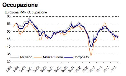 L’analisi Markit rivela che per il mese di febbraio, l’indice composito dell’occupazione abbia registrato il quattordicesimo calo consecutivo, segnando una contrazione delle assunzioni tanto nel settore dei servizi, quanto in quello manifatturiero (in calo per il tredicesimo mese consecutivo).