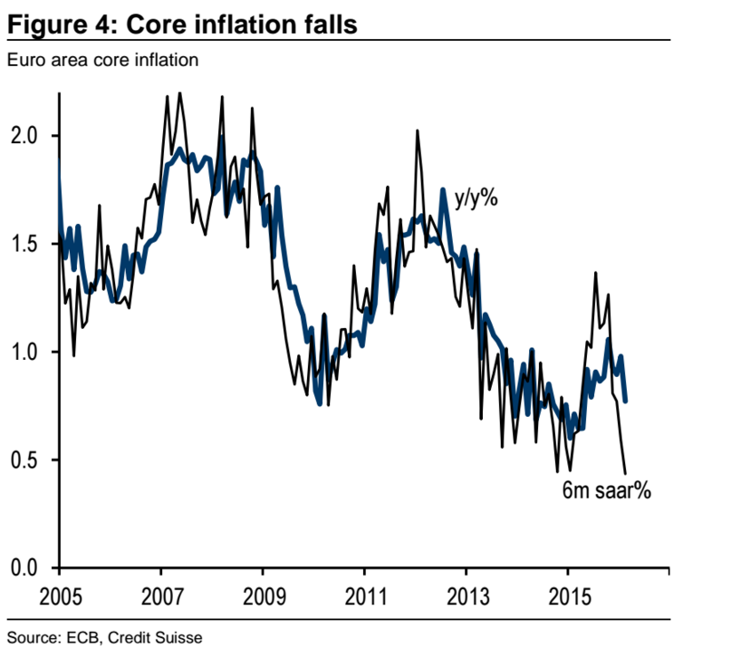 Tre mesi dopo, come sottolinea Credit Suisse, “tutto è cambiato”. Più specificatamente, “l’insieme di dati economici per la BCE sono molto divergenti” rispetto ai dati di dicembre.