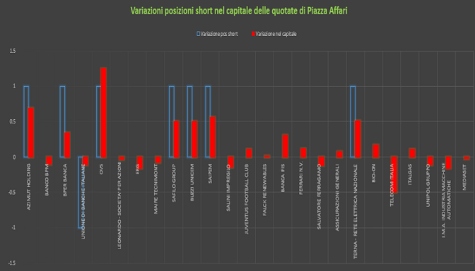 A tal proposito, il cambiamento più importante riguarda OVS, che già era stata messa sotto i riflettori nella scorsa analisi: i fondi hanno incrementato il numero di posizioni nette corte detenute di una unità, e la fame di short dell’1,25% sul capitale sociale.