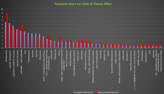 Rispetto alla scorsa ottava inoltre, sono entrate in classifica due società: la blue chip Amplifon e Credito Valtellinese. Tali quotate vedono una posizione corta in essere, pari allo 0,72% e allo 0,5% del capitale messo all’angolo dai fondi.