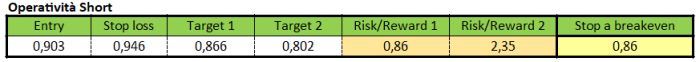 Un’eventuale rottura del livello orizzontale darebbe molto spazio di manovra sul fronte ribassista. Il prossimo livello al quale i compratori potrebbero ritrovare forza è posto a 0,866 euro per azione, supporto che conta il minimo di lunga data segnato durante la seconda decade del mese di aprile 2015.