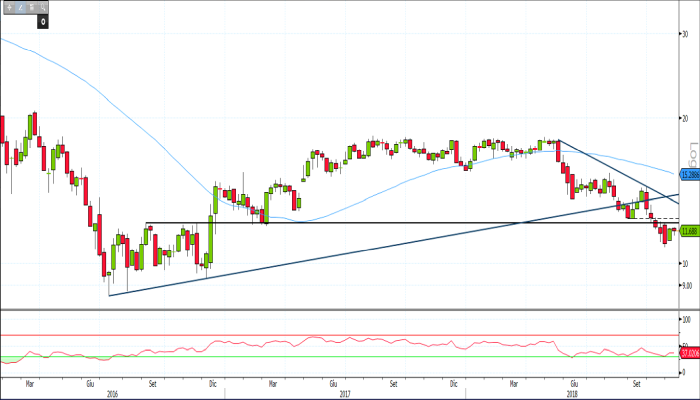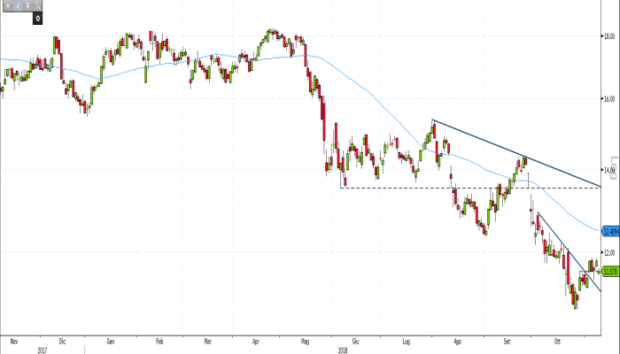 Per mantenere viva l’ipotesi di una prosecuzione del rimbalzo, è importante che i prezzi si mantengano al di sopra di quota 11,578 euro e che transitino velocemente più in su di 12 euro.