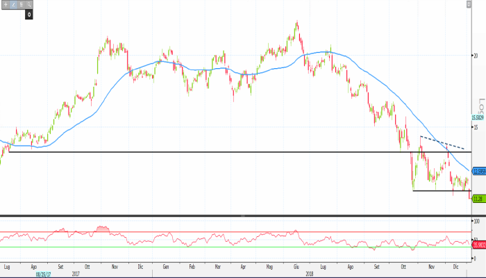 Dal punto di vista grafico, dopo aver aperto in gap down, i corsi hanno effettuato il breakout del fondamentale supporto a 11,62 euro, che aveva sostenuto i prezzi già in altre quattro precedenti occasioni.