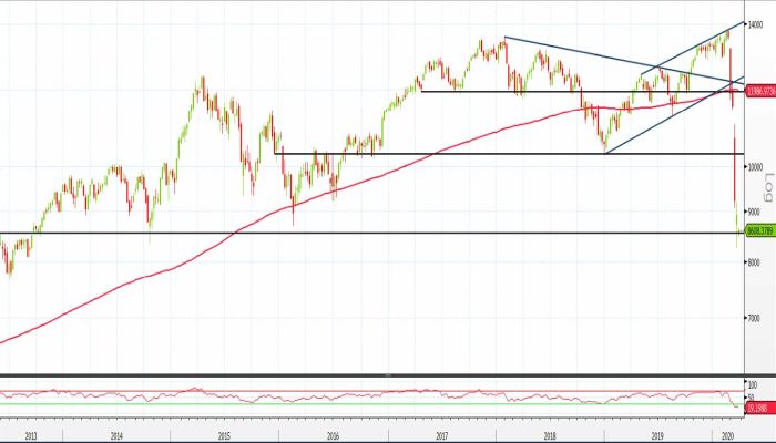 Operativamente, si potrebbe sfruttare un recupero di 9.200 punti per valutare una strategia di natura long con stop loss identificabile a 8.400 punti e obiettivo a 10.000 punti.
