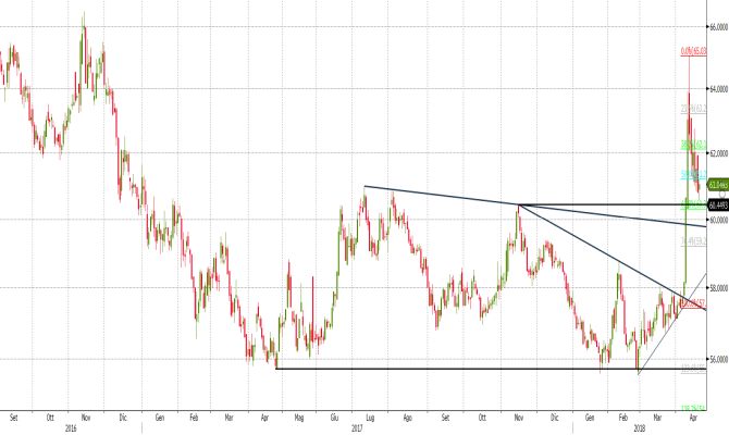 Il ritracciamento partito dai massimi intraday dello scorso 11 aprile ha ora riportato le quotazioni dell’USDRUB esattamente in prossimità di questo importante livello, in precedenza resistenza e ora diventato supporto. Lecito in tal senso attendersi dunque una ripresa della salita.
