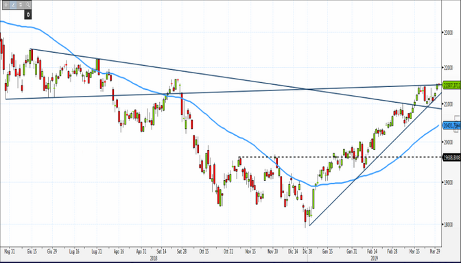 Il principale indice azionario italiano si avvicina sempre di più alla prossima resistenza statica a 21.680 punti, lasciata in eredità dal massimo segnato il 26 settembre 2018.