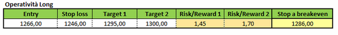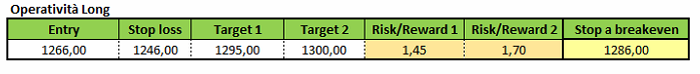 Operativamente, si potrebbero valutare strategie di stampo long a 1.266 dollari. Lo stop loss in tal caso sarebbe individuabile a 1.246 dollari, l’obiettivo principale a 1.295 dollari e l’obiettivo finale a 1.300 dollari.