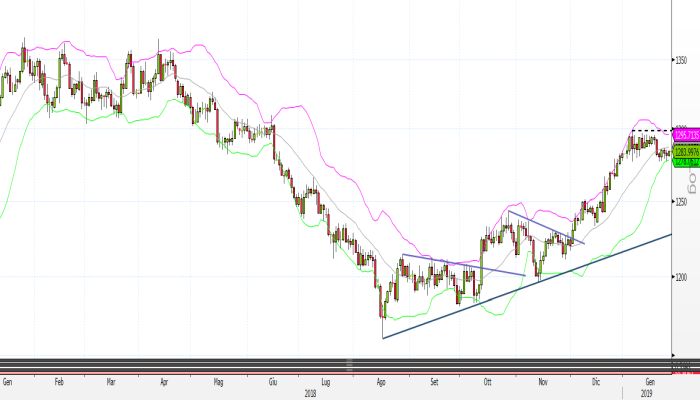 Proprio tale violazione ha permesso ai corsi di segnare in poco meno di un mese una performance del 5,95%, prima di segnare un nuovo massimo nella seduta del 4 gennaio a 1.298,53 dollari l’oncia.
