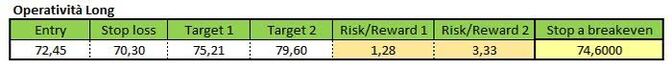 Alla luce dell’analisi tecnica sul Brent si vuole privilegiare un’operatività di tipo rialzista. Per implementare un’operatività di questo tipo occorre però prima una chiusura stabile al di sopra del livello statico chiave a 71,25 dollari e, a seconda del profilo dell’operatore, la rottura della trendline discendente ora transitante a 73,30 dollari o la rottura del massimo della candela del 15 agosto. L’operatore più conservatore potrebbe attendere la rottura della trendline discendente superiore, mentre l’operatore più aggressivo potrebbe invece anticipare l’entrata a mercato alla rottura del massimo della candela del 15 agosto a quota 72,44 dollari (che con la candela successiva forma un pattern inside). In entrambi i casi l’obiettivo potrebbe essere identificato a 75,40 dollari al barile prossimo livello resistenziale statico prima di arrivare in area 79,70-80,49 dollari area resistenziale dell’anno.