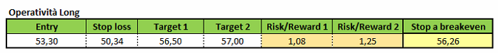 Visto quanto emerso dall’analisi tecnica, si potrebbero valutare strategie di matrice long da 53,30 dollari al barile, puntando ad un ritorno dei prezzi verso la SMA 200. A tal proposito, lo stop loss andrebbe posto poco sotto i minimi di ieri, a 50,34 dollari, mentre l’obiettivo principale a 56,50 dollari. Il target finale sarebbe invece identificabile a 57 dollari.