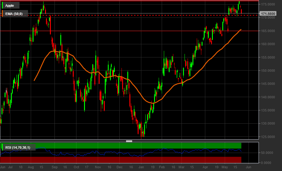 Apple, grafico giornaliero. Fonte: TeleTrader