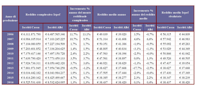 C’è comunque una notizia positiva per gli avvocati: dopo anni di contrazione il reddito è rimasto invariato rispetto al 2016 (+0,1%). Dopo il calo notevole che c’è stato tra il 2013 e il 2012 (-17,7%), quindi, la situazione sembra essersi stabilizzata.
