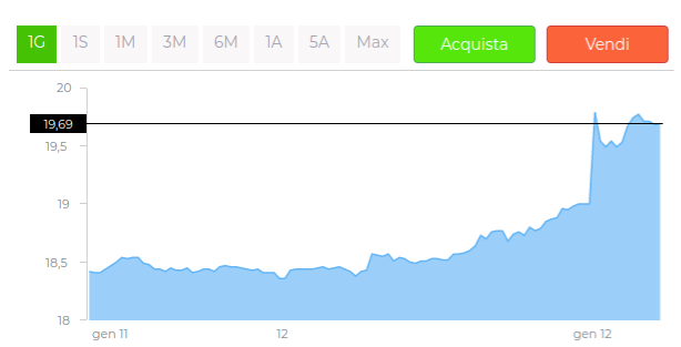 Al momento della scrittura le azioni FCA viaggiano con un rialzo del 3,50% e scambiano su quota 19,670 euro.