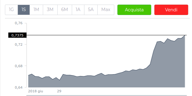 Ad oggi non è ancora chiaro se Cristiano Ronaldo indosserà o meno la maglia bianconera, ma la indiscrezioni su un’operazione da 400 milioni di euro si sono fatte sempre più marcate con il susseguirsi delle giornate. Tanto è bastato alle azioni Juventus per decollare e per passare dai €0,67 di lunedì a oltre quota €0,74, sopra i massimi di febbraio scorso.