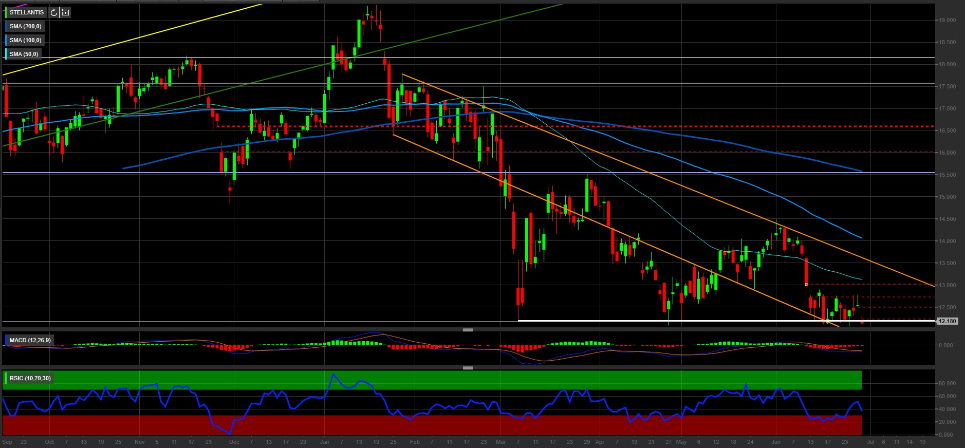Dopo i minimi innescati dall’invasione russa dell’Ucraina, i corsi del gruppo automobilistico hanno recuperato terreno spingendosi a 15,5 euro. Questo livello statico ha innescato una nuova correzione che, dopo un nuovo test dei 12,2 euro ha spinto i prezzi a 14,5 euro.